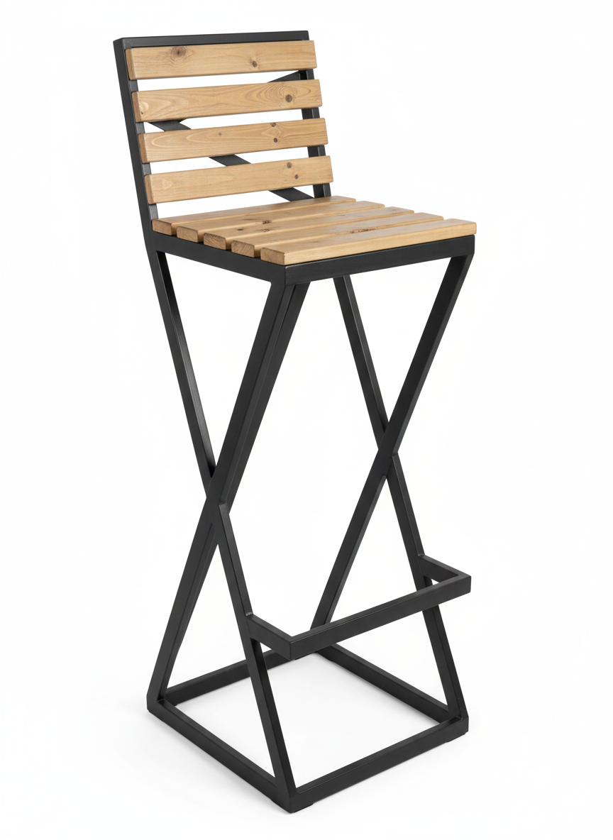 Luxusní barová židle X-Cross s křížovou podnoží a dřevěným sedákem