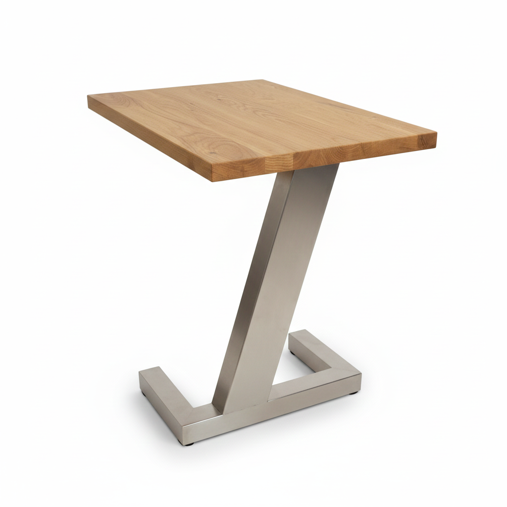 Moderní příruční stolek s dubovou deskou a podnoží ve tvaru Z